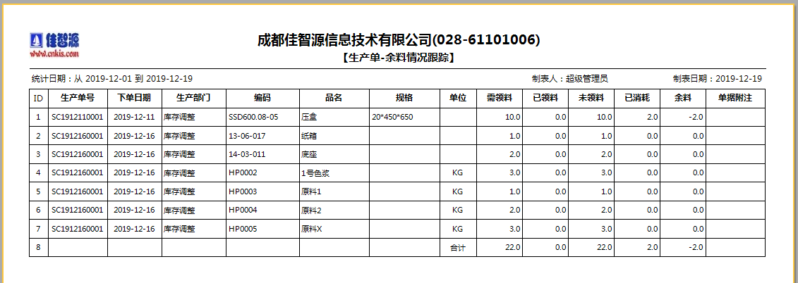 生產(chǎn)單,領(lǐng)料后的,余料情況查詢(點(diǎn)擊圖片可查看清晰大圖)